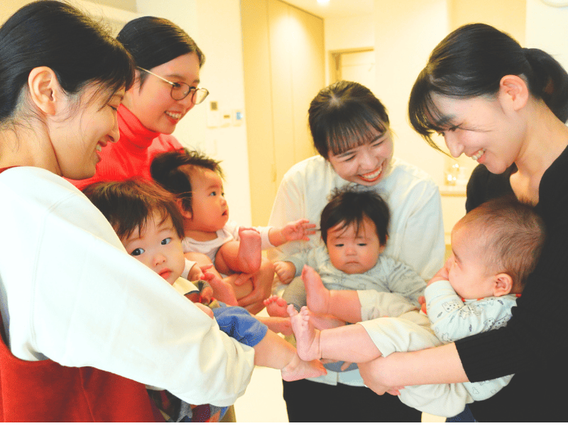 5回の定期レッスンは、毎回同じメンバーで日程を合わせて進めていきます。いつも顔を合わせる安心感の中で、ママ同士のつながりも自然と深まり、リラックスして参加できます。赤ちゃんたちの成長を、みんなで一緒に喜び合えるのも、このクラスならではの魅力です。