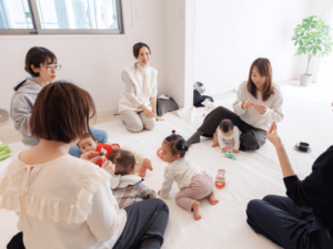 息子は私の友だちの赤ちゃんに会ってもなかなか興味を示さなかったのですが、レッスンで定期的に同じお友だちに会うことで最後は手を伸ばしたりしている様子もあったため、本当に成長を感じました。レッスン後のティータイムでは皆さんと楽しくお話しすることができ、リフレッシュできました。本当に学びの多いレッスンでした。ありがとうございました!